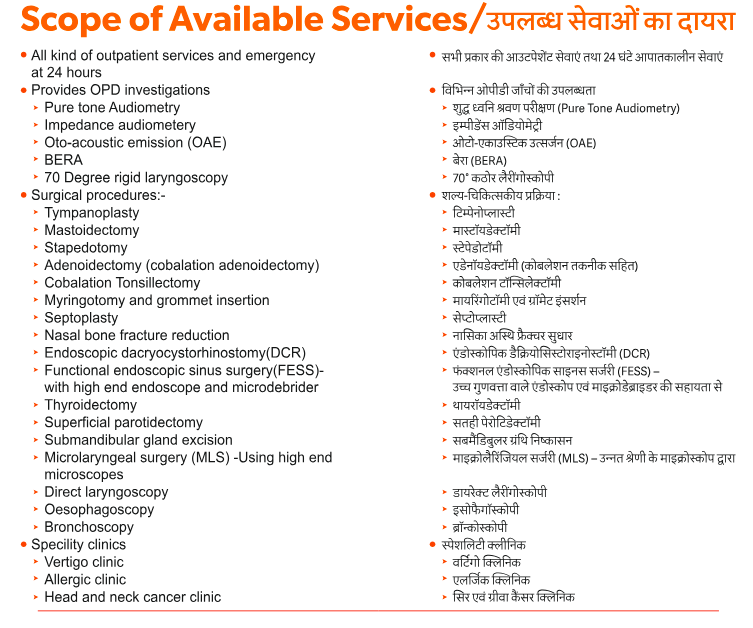 Advanced diagnostic facilities including audiometry, endoscopy, and imaging support.