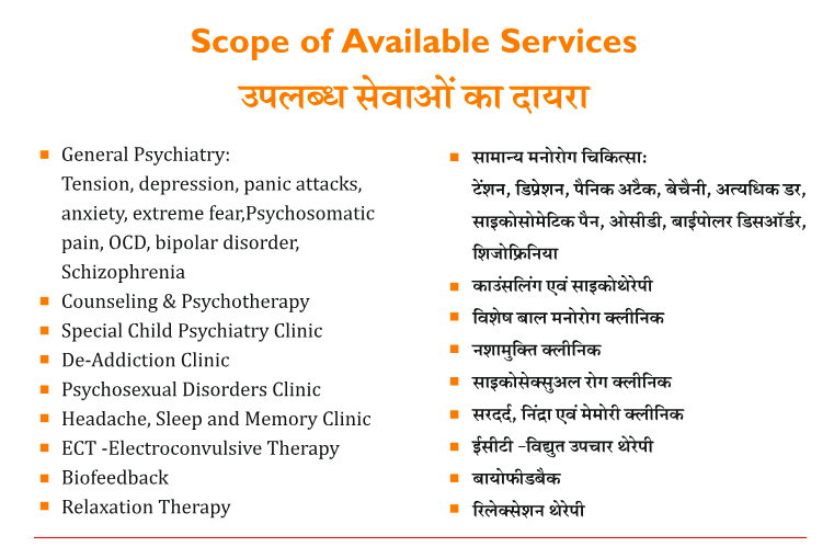 De-addiction clinic, counseling rooms, and psychotherapy facilities.